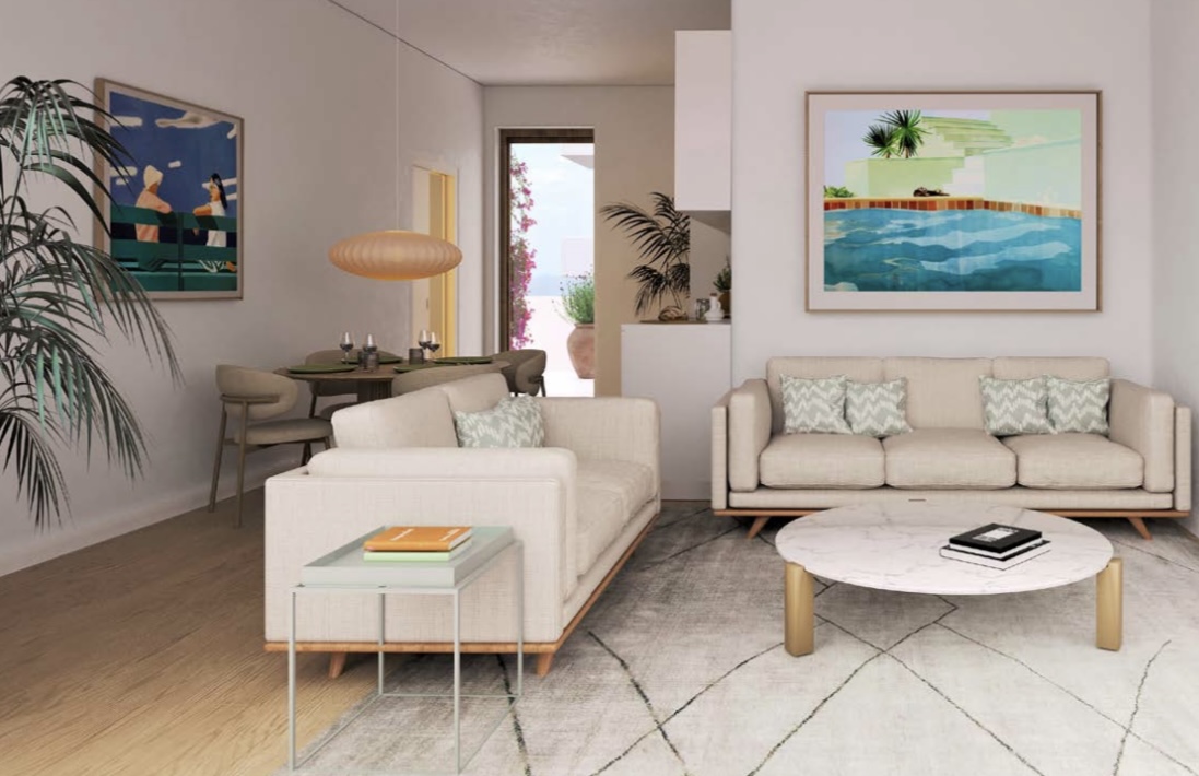 This exclusive project comprises 32 one- and two-bedroom apartments, most of which have one bedroom. It is located in Es Vivé, on the second line of the seafront, very close to the Torre del Mar hotel. Designed to offer a complete experience, Belisla Bossa Nova is orchestrated around its undulating façade, with breathtaking views from its glass balconies, which give maximum depth and perspective to the main rooms.